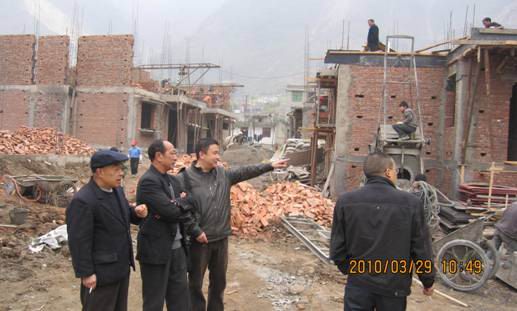 2009年12月13日,建筑合同签订第三天,施工队入场开挖地基。开挖后发现有两眼泉水需安涵管引走才能下房屋基础,这样下基础的时间推迟了二十多天。2010年1月24日,方早村的建房工地上工人们正在忙碌施工,但运送砖、砂石、水泥等建筑材料的通道不通了,麻柳湾村的书记和另一户村民修房挖基础,使通道宽度不够大车无法过,建筑材料运不进去只有停工。我们帮扶工作组与方早村的干部找到建房户、麻柳湾村的书记、擂鼓镇上的干部多方协调,我局党组成员、机关党委书记饶志清同志赶到擂鼓亲自做工作,麻柳湾的书记主动将基础退让一米五,那户村民也退后一米下基础,才使通道畅通了。因种种原因影响,建房施工进度很慢,没法按合同约定竣工交付使用。夏天很快就要到了,我的心里非常着急。我一定要努力协调好各方关系,力争在“5.12”特大地震两周年之前让老百姓住上永久性住房。