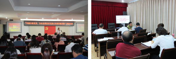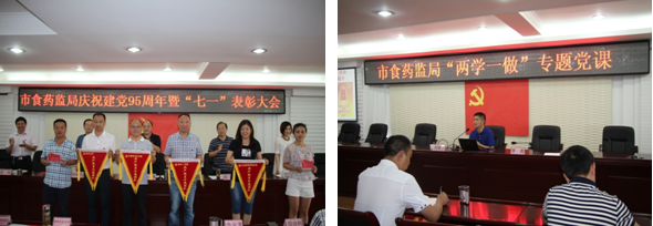 在建党95周年即将来临之际,市食药监局组织开展了丰富多彩的庆祝活动。一是认真上好“四堂党课”。党组书记、局长带头到所在支部和所联系的精准扶贫村讲党课,其他7名党组成员也分别到所在支部和所联系的单位讲党课,4名支部书记及4名普通党员也结合自身实际讲党课。6月24日,又邀请了市委党校的刘奇志教授为全体党员上了一堂《从党章出发,向党章看齐》的专题党课,不断增强党员干部的党性意识。二是广泛开展专题讨论。围绕“坚定理想信念,明确政治方向”,6月底前,各支部按照“时间到位、人员到位、发言到位”的要求,组织党员干部认真开展学习讨论。为增强学习讨论效果,还组织党员参观了绵阳党史馆,为党员购买了《全面小康热点面对面》,党员领导更是干部带头发言,带头找差距,带头转观念转作风。每名党员也结合自身思想、工作、生活实际,认真准备了发言提纲,确保通过学习讨论净化党员思想,提高工作成效。三是扎实抓好党员示范行动。制定印发了《关于开展“百业联动、万人争先”党员示范行动的通知》,通过创建、评议、申报、公示、命名五个阶段,结合年终考核、党员民主评议、支部书记双向述职,在全体党员干部、机关各科室及直属单位广泛开展党员示范活动。“七一”前,举行了授牌仪式,命名了19个党员示范岗、10个党员示范团队。四是深入挖掘先进典型。以“党旗领航食品药品安全放心市建设”党建品牌为引导,大力挖掘食品药品监管各战线上爱岗敬业、创先争优的先进典型,在党员民主评议的基础上,表彰了22名优秀共产党员、优秀党务干部。组织专人对先进典型的感人故事进行收集整理,并在局网站上设立了“身边的共产党员”专栏。五是组织开展主题演讲。以“做合格党员,为食品药品安全放心市建设作贡献”为主题,组织开展演讲比赛,10名来自各支部的年轻党员参加了比赛。通过讲述身边党员故事、回顾自身入党经历、畅谈监管事业发展思路,使大家充分认识到新时期合格党员要有新姿态、新作为,以实际行动和优异成绩向党的95周年献礼。